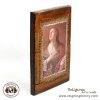 Hand-made Wooden retablo with an image of Saint Penitente Magdalene Antiqued Canvas and Burlap mounted on wood.